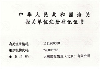 中華人民共和國海關(guān)報關(guān)單位注冊登記證書
