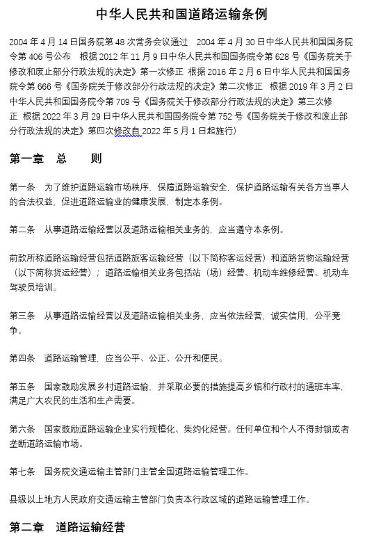 中華人民共和國道路運(yùn)輸條例